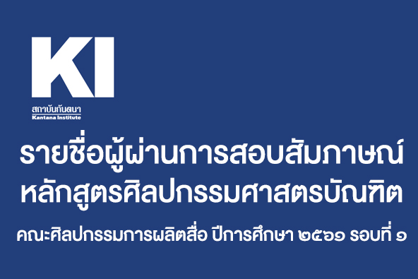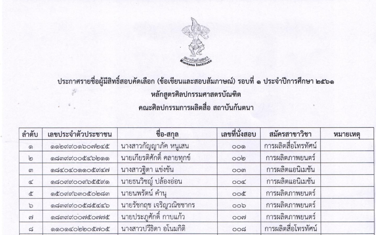 รายชื่อผู้ผ่านการสอบสัมภาษณ์ หลักสูตรศิลปกรรมศาสตรบัณฑิต คณะศิลปกรรมการผลิตสื่อ ปีการศึกษา ๒๕๖๑ รอบที่ ๑