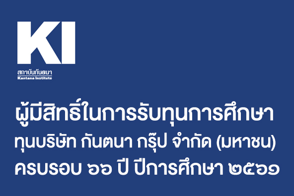 ผู้มีสิทธิ์ในการรับทุนการศึกษา ทุนบริษัท กันตนา กรุ๊ป จำกัด (มหาชน) ครบรอบ ๖๖ ปี ปีการศึกษา ๒๕๖๑