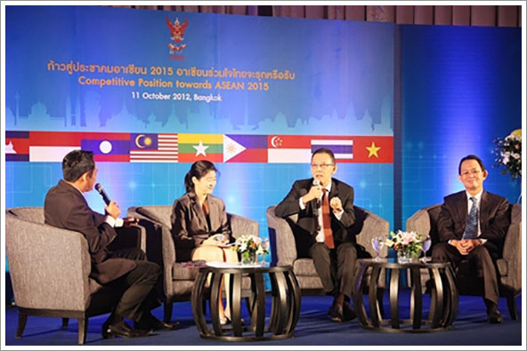 คุณจาฤก กัลย์จาฤก ที่ปรึกษาสถาบันกันตนา เข้าร่วมอภิปราย “ก้าวสู่ประชาคมอาเซียน 2015 อาเซียนร่วมใจไทยจะรุกหรือรับ”