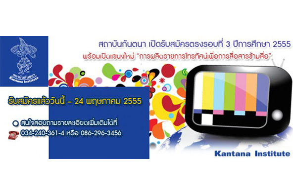 สถาบันกันตนา เปิดรับสมัครตรงรอบที่ 3 ปีการศึกษา 2555 พร้อมเปิดแขนงใหม่ “การผลิตรายการโทรทัศน์เพื่อการสื่อสารข้ามสื่อ”