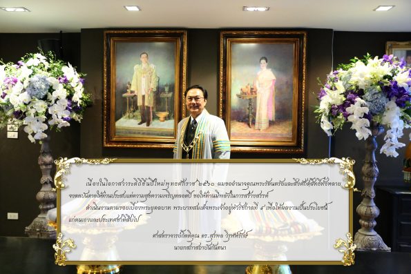 จงดลบันดาลให้ท่านประสบแต่ความสุขความเจริญตลอดปี ขอให้ท่านมีพลังในการสร้างสรรค์ ดำเนินงานตามรอยเบื้องพระยุคลบาทพระบาทสมเด็จพระเจ้าอยู่หัวรัชกาลที่ ๙ เพื่อให้ผลงานเป็นประโยชน์แก่ตนเองและประเทศชาติสืบไป