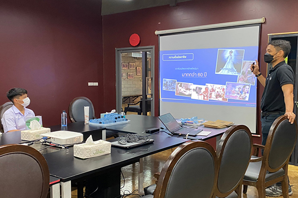 โดย อาจารย์ปริยะ ศรีวาณิชรักษ์ ได้เป็นวิทยากรบรรยายในหัวข้อ ที่มาของสถาบันกันตนาและวิธีการจัดการเรียนการสอน รวมถึงประชาสัมพันธ์ข้อมูลการรับสมัครของสถาบันกันตนา เพื่อให้คณะเยี่ยมชมได้รู้จักสถาบันกันตนามากขึ้น นอกจากนี้อาจารย์นท พูนไชยศรี ได้เป็นวิทยากรบรรยายถึงภาพรวมของบริษัท กันตนา กรุ๊ป จำกัด (มหาชน) และบริษัทในเครือ ผลงานตั้งแต่อดีตจนถึงปัจจุบัน รวมถึงขั้นตอนกระบวนการผลิตสื่อระดับมืออาชีพ