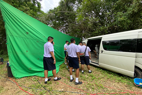 สุดท้ายนี้ คณะเยี่ยมชมได้เข้าไปศึกษาดูงานที่โรงเก็บเสื้อผ้า และอุปกรณ์ สำหรับการถ่ายทำ และเยี่ยมชมกองถ่ายทำละครโทรทัศน์ ของ บริษัท กันตนา มูฟวี่ทาวน์ (2002) จำกัด เพื่อให้คณะนักเรียนได้เห็นการทำงาน กระบวนการผลิตสื่อจากสถานที่จริง ด้วยบุคลากร และเครื่องมืออุปกรณ์ ในระดับมืออาชีพ เพื่อสร้างแรงบันดาลใจ และความรู้ความเข้าใจในด้านสายงานการผลิตสื่อ เพื่อหวังจะเป็นประโยชน์ต่อไปในการศึกษาต่อระดับอุดมศึกษา