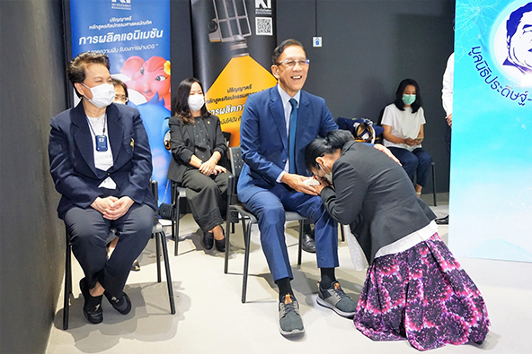 นอกจากนั้น คุณจุฑาทิป เอี่ยมสด ผู้แทนนักศึกษาสถาบันกันตนาระดับปริญญาโท ที่ได้รับทุน "มูลนิธิประดิษฐ์ - สมสุข กัลย์จาฤก" ได้กล่าวแสดงความขอบคุณพร้อมมอบพวงมาลัยดอกไม้ แด่ ผศ.ปนัดดา ธนสถิตย์ รองประธานมูลนิธิประดิษฐ์ - สมสุข กัลย์จาฤก