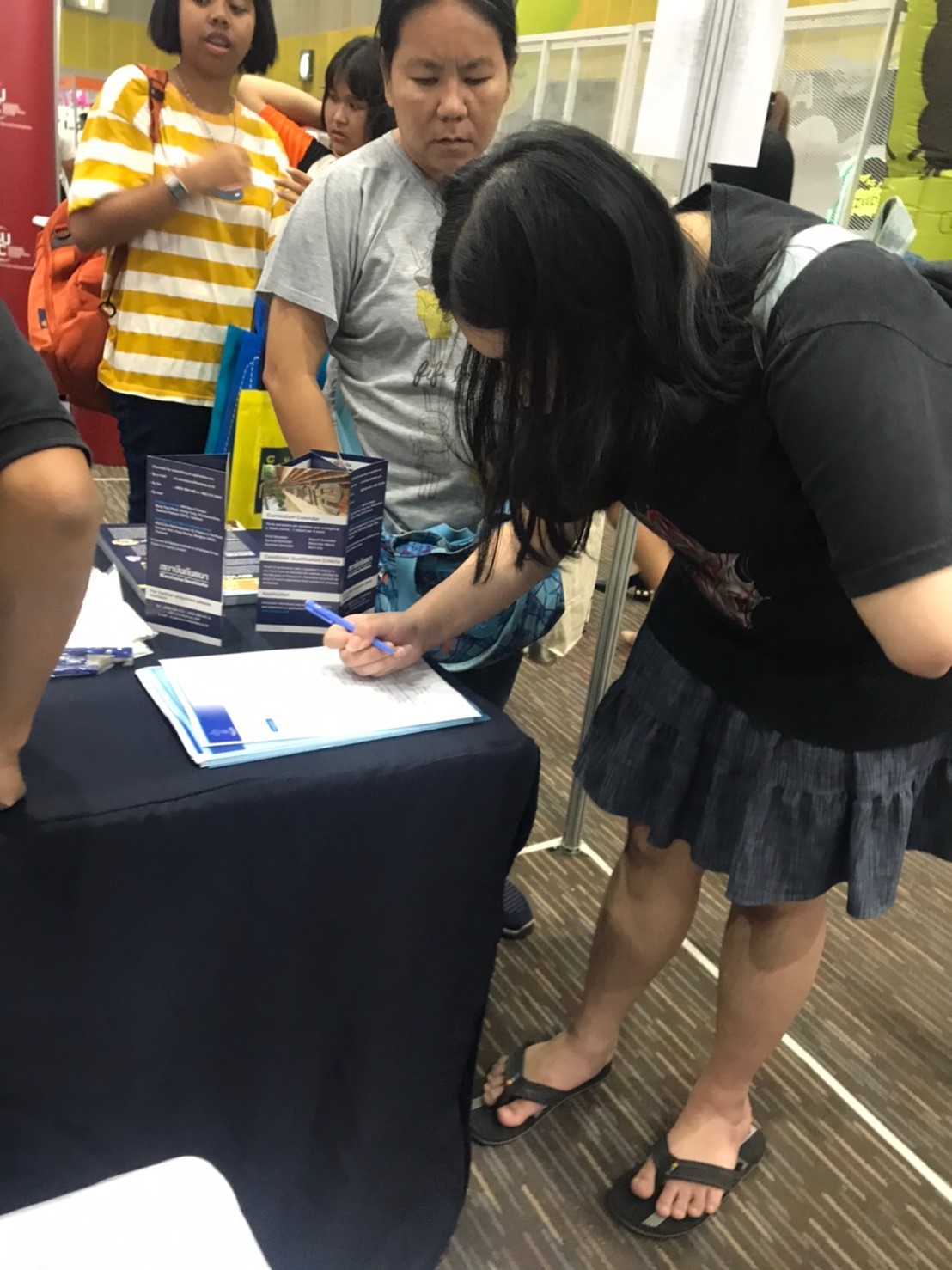 ในการนี้คณาจารย์และนักศึกษาของสถาบันได้ร่วมกันให้คำอธิบายรวมถึงแจกเอกสารเกี่ยวกับหลักสูตรการเรียนการสอนในรายวิชาต่างๆของสถาบันกันตนาที่เป็นการเรียนเนื้อหาเฉพาะทางในลักษณะของมหาวิทยาลัยบรรษัทด้านการผลิตสื่อทั้งในระดับปริญญาตรีและปริญญาโท