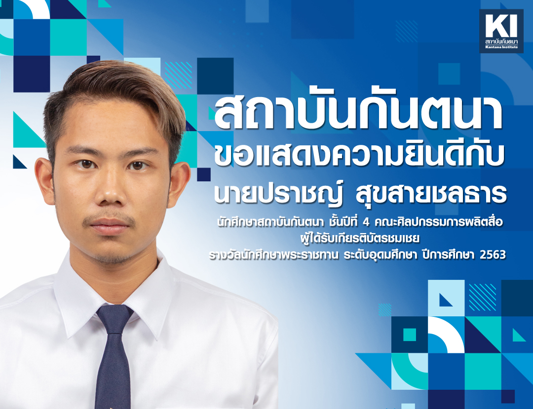 ขอแสดงความยินดีกับ นายปราชญ์ สุขสายชลธาร ผู้ได้รับเกียรติบัตรชมเชย รางวัลนักศึกษาพระราชทาน ระดับอุดมศึกษา ประจำปีการศึกษา 2563