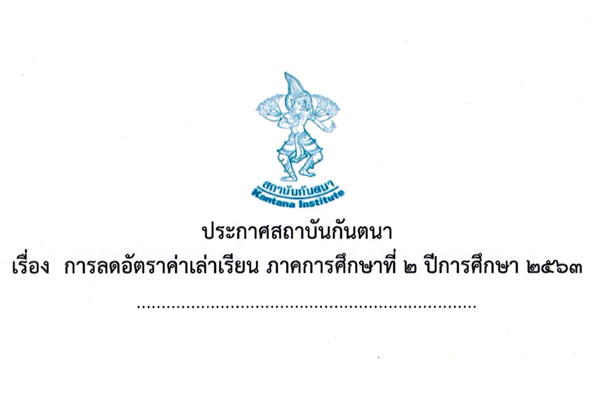 ประกาศสถาบันกันตนา -การลดอัตราค่าเล่าเรียน ภาคการศึกษาที่ 2 ปีการศึกษา 2563