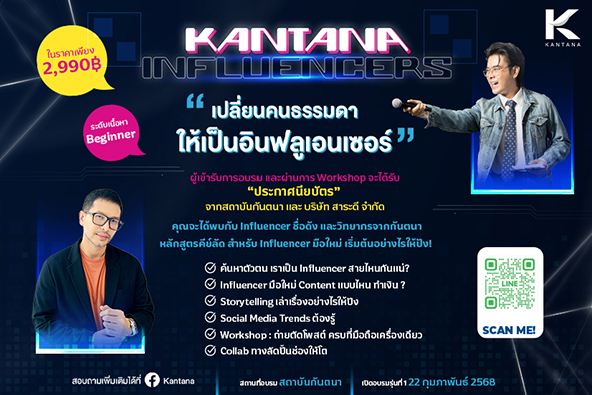 รับสมัครอบรม "Kantana Influencers" จากคนธรรมดาสู่ อินฟลูเอ็นเซอร์มือโปร ใน 1 วัน!